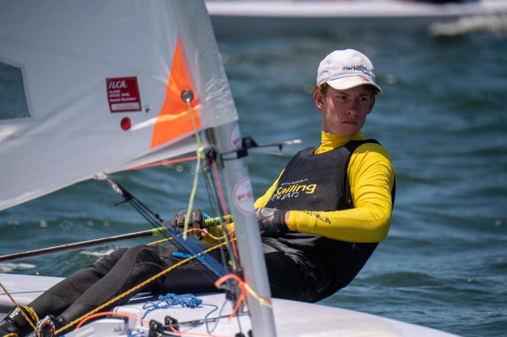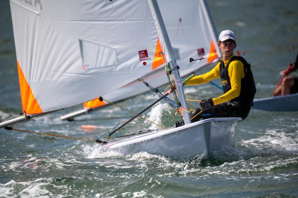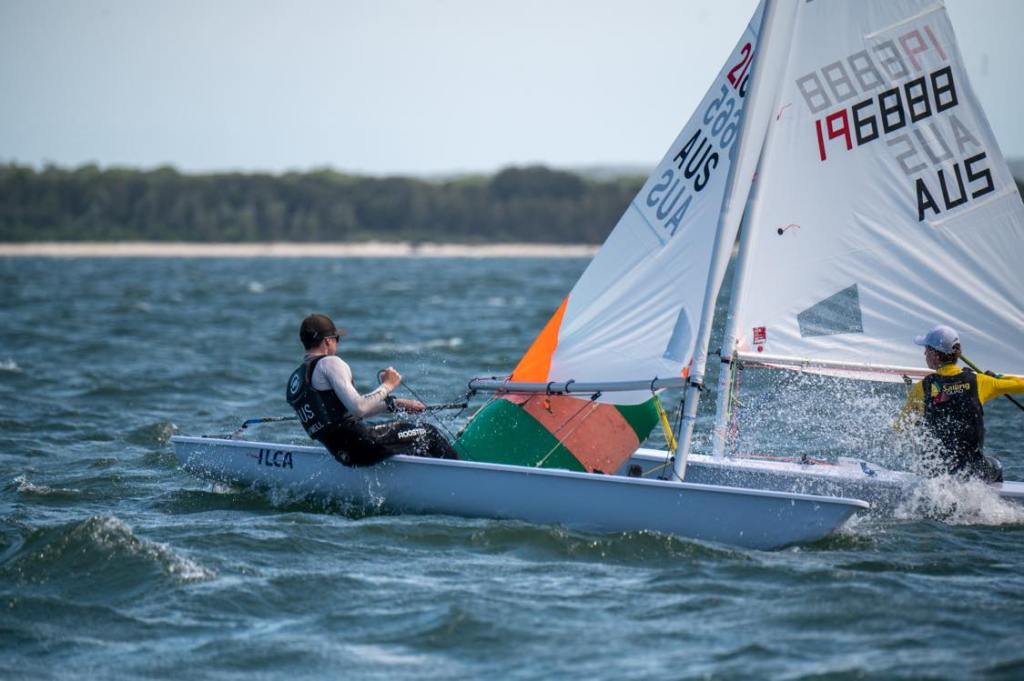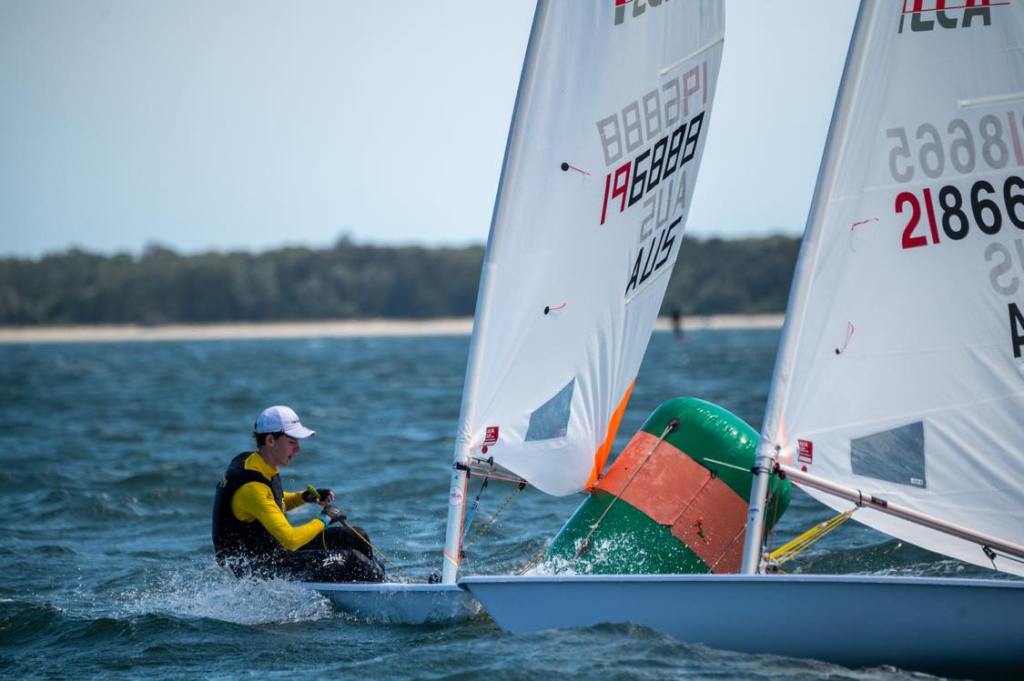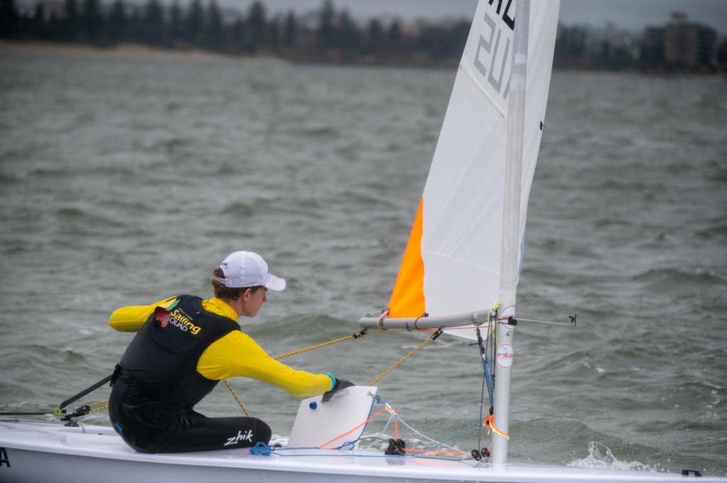 The first couple of days is when all boats entered the regatta are measured. My coach was there with us also two days before the racing began, I went out and did some practice racing. To get a feel for the venue. This went really well. I was right at the pointy end of the fleet. Most of the top sailors were training in the same range that I was. Most importantly, there were only about 25 boats training. This size fleet I’m used to. The most I’ve sailed in was in Optimist boat fleet of 28 boats at one regatta. But nothing like the 55 boats at the nationals.